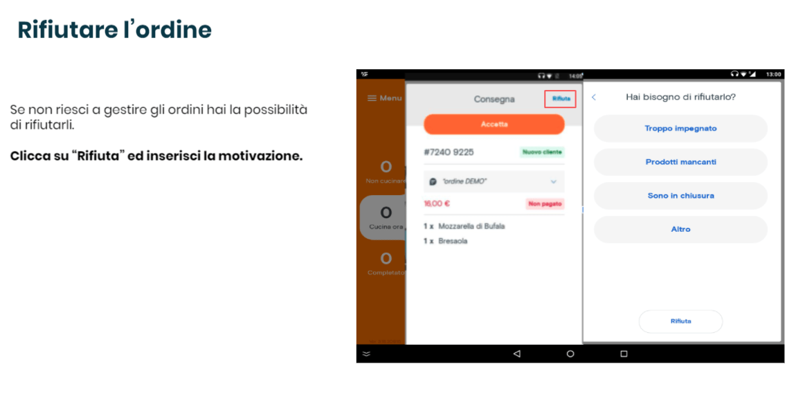 C’e anche la possibilità di rifiutare un ordine qualora la tua cucina sappia di non poterlo evadere.