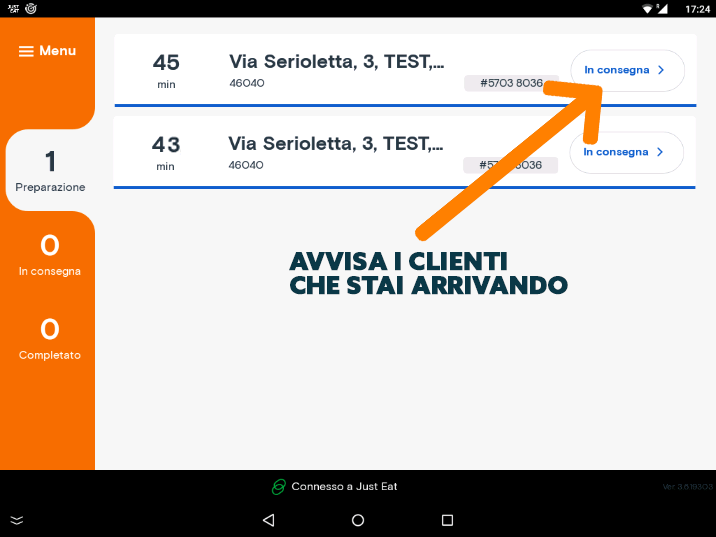 Completa la preparazione dell’ordine e quando è pronto per la consegna, clicca sull’apposita notifica.