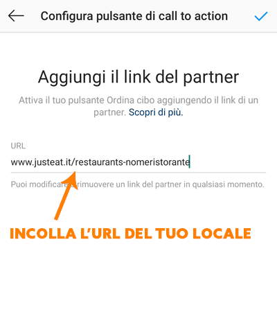 4. Incolla l’url del menù del tuo locale su Just Eat e conferma.