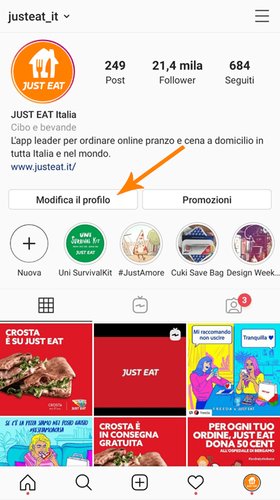 1. Accedi al tuo profilo Instagram e clicca su Modifica Profilo